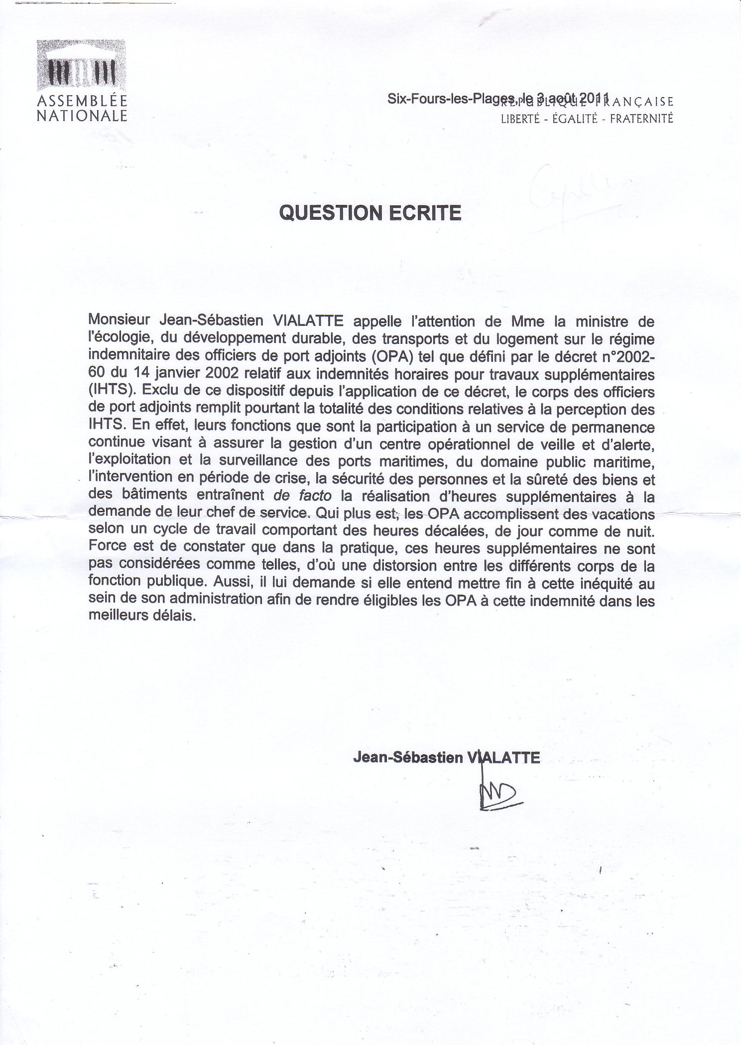 *Question au gouvernement de monsieur le député Jean-Sébastien Vialatte.